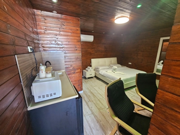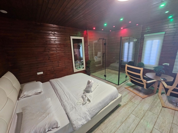 אז מה מחכה לכם בסוויטה: מיטה איכותית נוחה ומפנקת הכוללת מצעי כותנה מקוריים שיעלו לכם מיד חיוך על הפנים, אנחנו אוהבים פינוקים ולכן הוספנו ג'קוזי זרמים זוגי ומרווח, חדר הרחצה הכולל מוצרי רחצה כגון שמפו, סבונים, מוצרי טואלטיקה ומגבות גוף איכותיות, בהמשך הסוויטה תוכלו ליהנות מסלון העור היוקרתי שלנו לצד מסך טלוויזיה, קיים מטבחון מאובזר, פינת קפה הכוללת שתיה חמה להנאתכם.