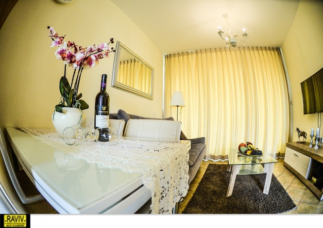 עיצוב קפדני יוצא דופן, שניתן למצוא רק בסוויטות מהסוג הזה, אירוח מושלם ומפנק מחכה לכם כאן הכולל חדר אירוח מפנק ובו ספה תלת מושבית נוחה, מסך דק בכבלים. מיזוג אוויר, פינת אוכל ותאורה דקורטיבית. חדר שינה רומנטי ומזמין שבמרכזו מיטה זוגית עטופה מצעים לבנים. נוף משגע של נאות גולף בקיסריה. לרשותכם, פינת קפה מפנקת, שתיה קלה וכיבוד קל ובקיצור כל מה שדרוש לנופש ספונטני ומהנה – פנינה קיסרית – סוויטה לפי שעה בקיסריה